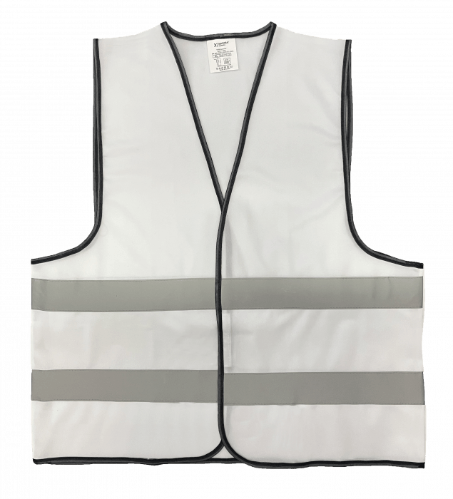 BIAŁA kamizelka ostrzegawcza. wykonana z poliestru o gramaturze 130 g/m2. Posiada dwa odblaskowe paski o szerokości 5 cm. Zapinane na rzep. Zakres rozmiarów S / M / L / XL / 2XL / 3XL