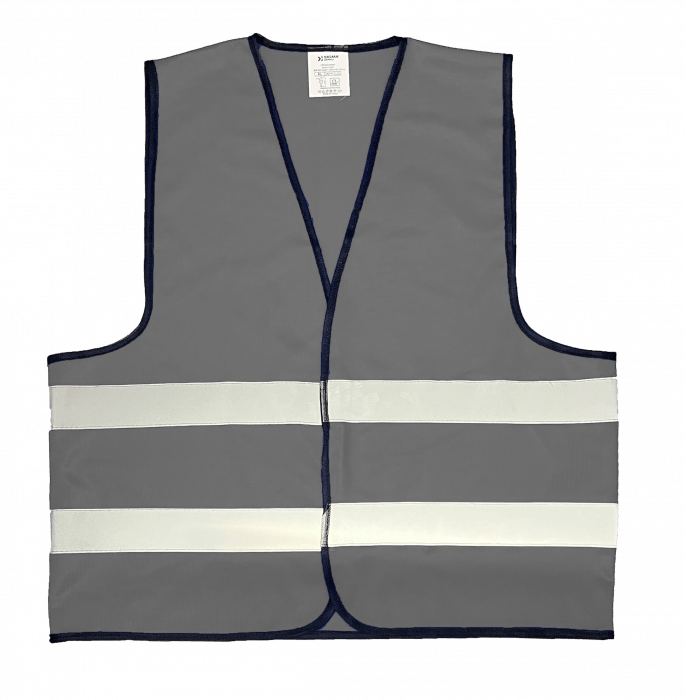 SZARA kamizelka ostrzegawcza. wykonana z poliestru o gramaturze 130 g/m2. Posiada dwa odblaskowe paski o szerokości 5 cm. Zapinane na rzep. Zakres rozmiarów S / M / L / XL / 2XL / 3XL